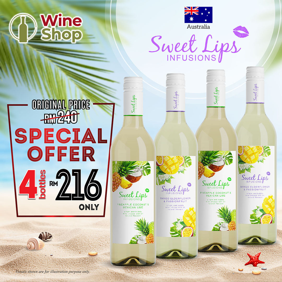 Sweet Lips Infusions (Mango Elderflower & Passionfruit) All natural flavours- perfectly balanced with a moscato base. Enjoy this easy drinking, refreshing and lightly spritzed wine well chilled. This moderately sweet wine is lower in alcohol and has aromas of mango and elderflower notes, finishing with passionfruit hints. For extra refreshment, enjoy over ice or as apart of a cocktail mix.
